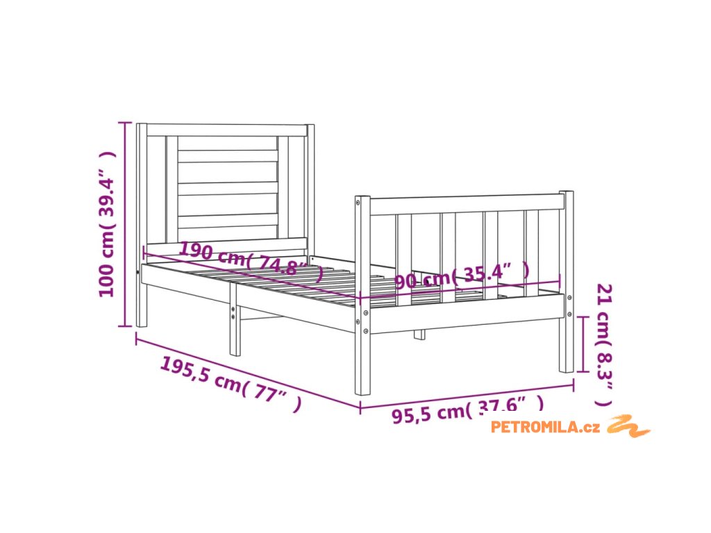 - Celkové rozměry postele: 195,5 x 95,5 x 100 cm (D x Š x V)