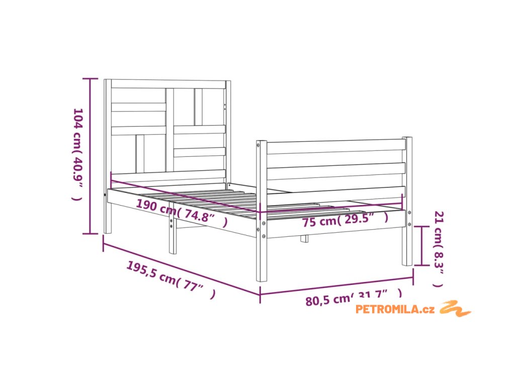 - Celkové rozměry postele: 195,5 x 80,5 x 104 cm (D x Š x V)