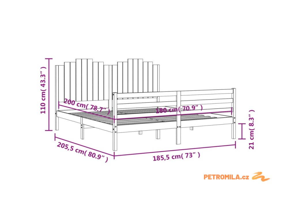 - Celkové rozměry postele: 205,5 x 185,5 x 110 cm (D x Š x V)