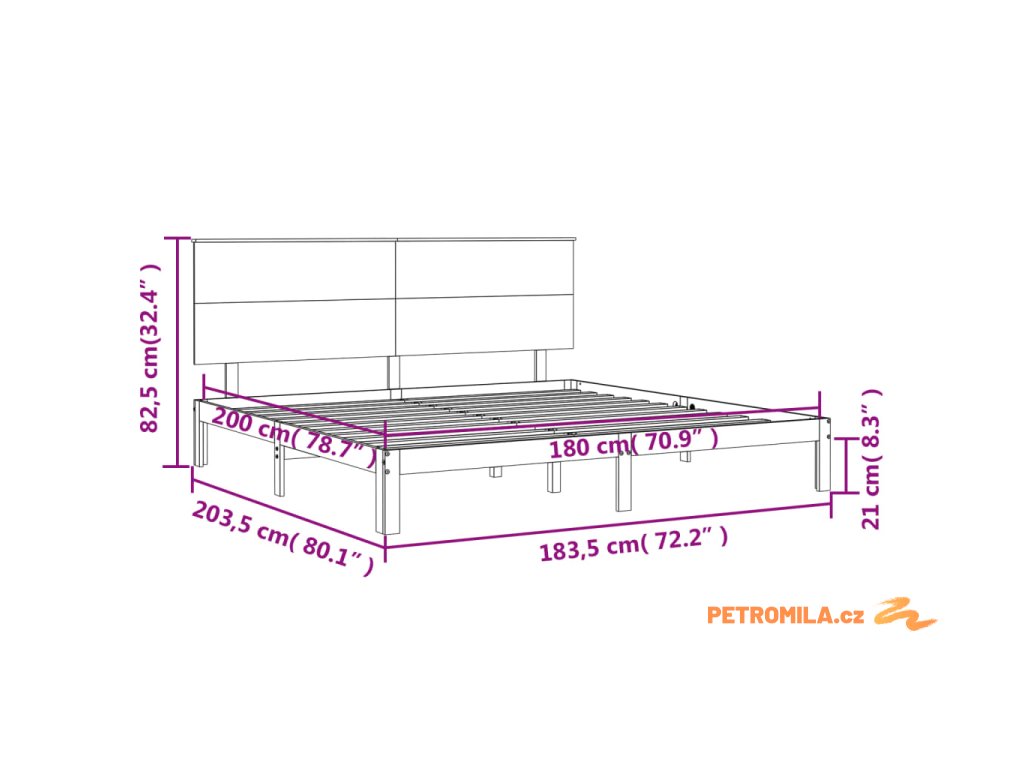 - Celkové rozměry postele: 203,5 x 183,5 x 82,5 cm (D x Š x V)