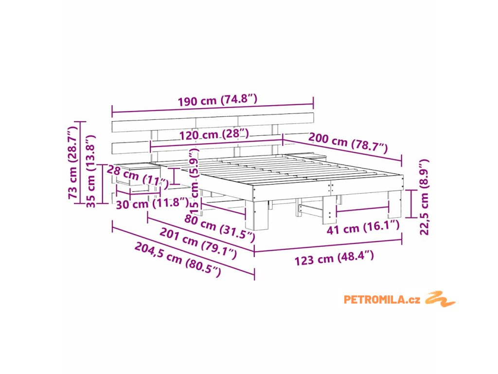 - Masivní borové dřevo: Celý rám, čelo a nohy jsou z masivního borového dřeva, což zajišťuje spolehlivou a stabilní konstrukci. Tento materiál se postará o dlouhou životnost a stabilitu, takže je to skvělá investice. Hladká textura přidává příjemný dotek.
