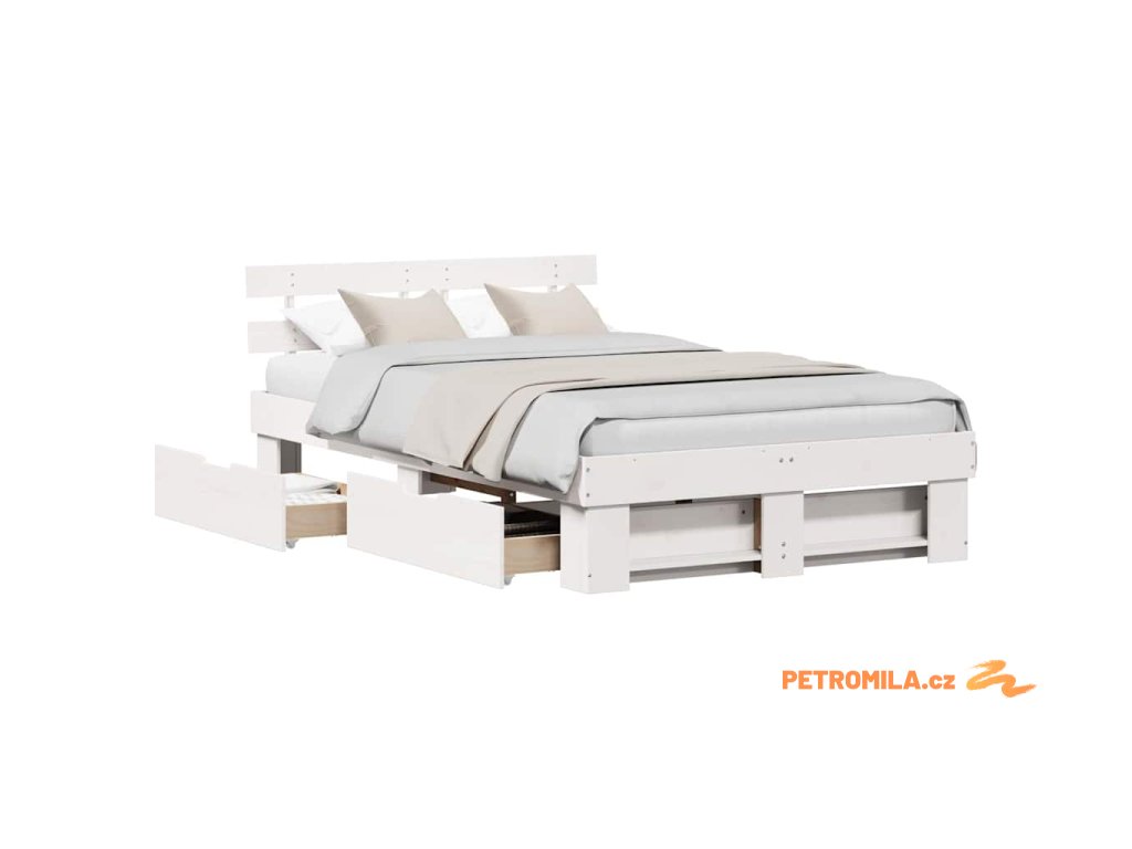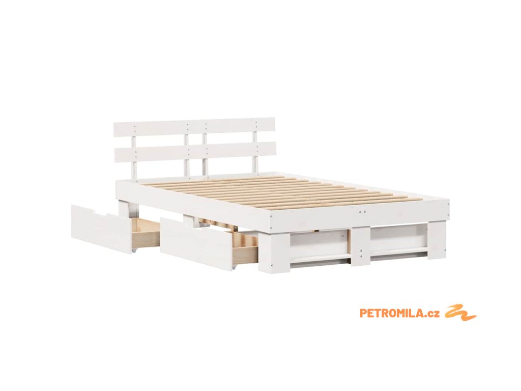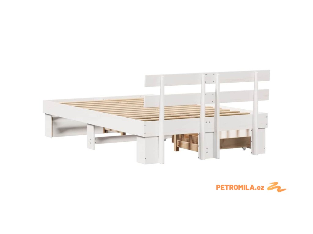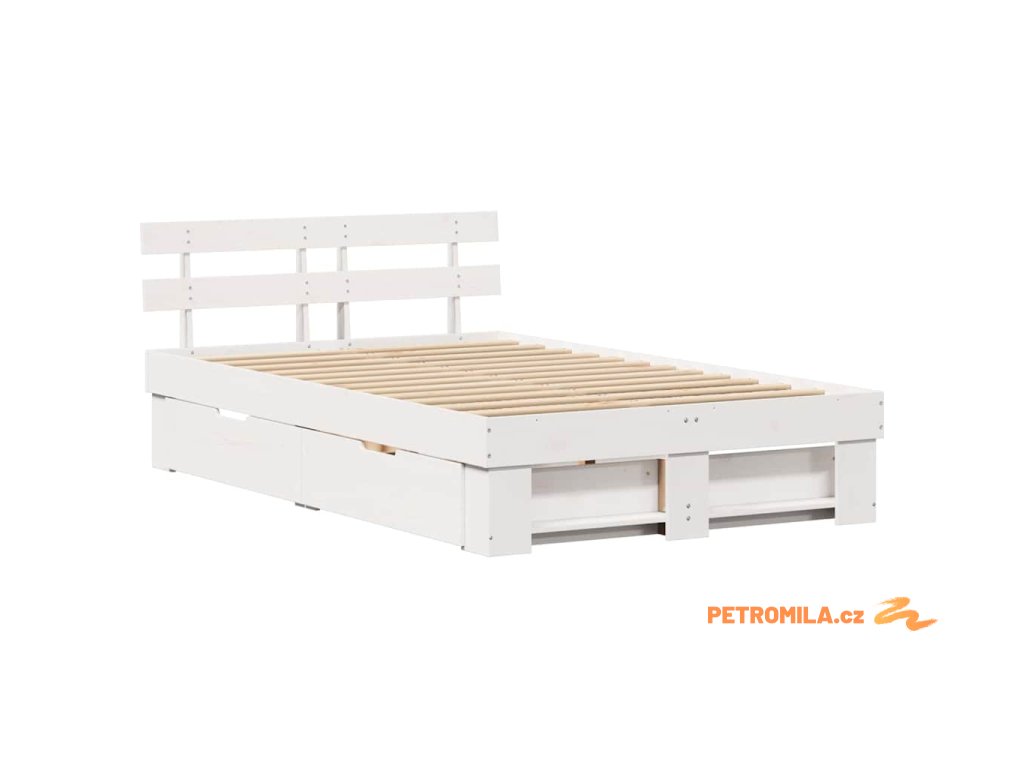 Rám postele s čelo Bílá 120 x 200 cm Masivní borové dřevo