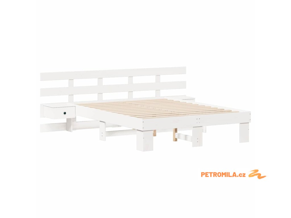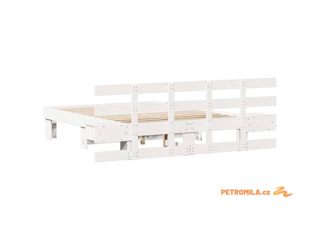 Rám postele s čelo Bílá 135 x 190 cm Masivní borové dřevo