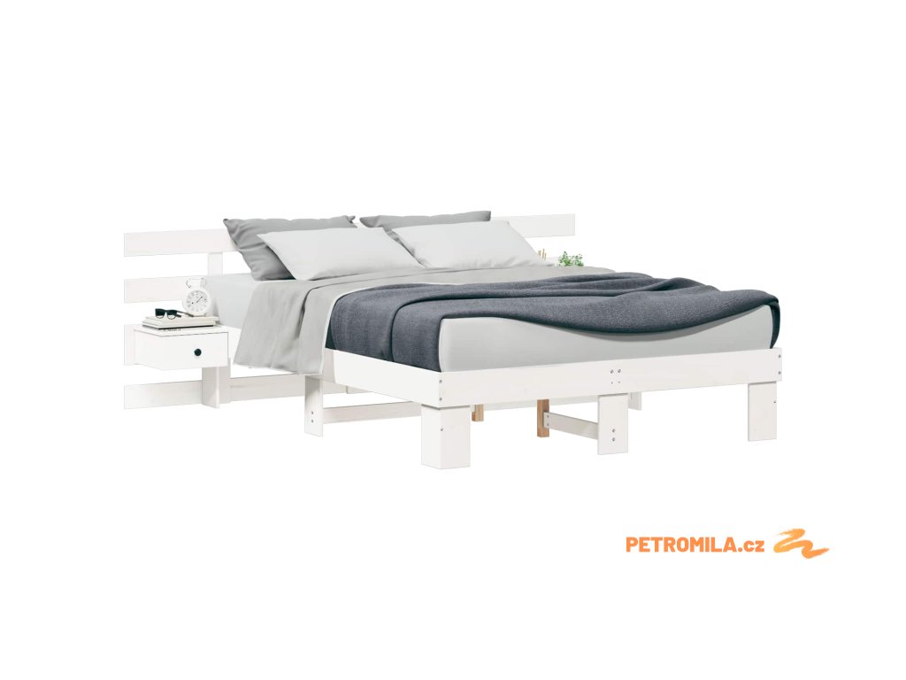 Rám postele s čelo Bílá 140 x 200 cm Masivní borové dřevo