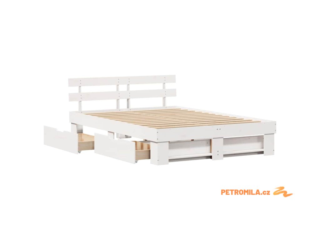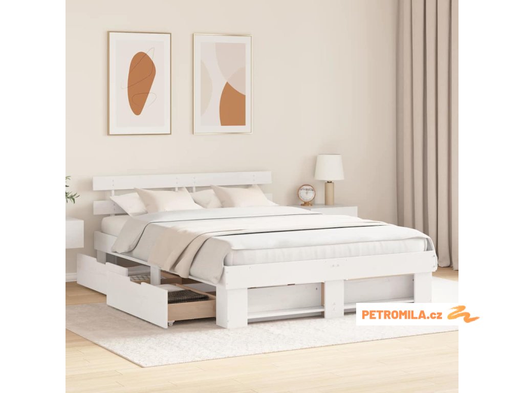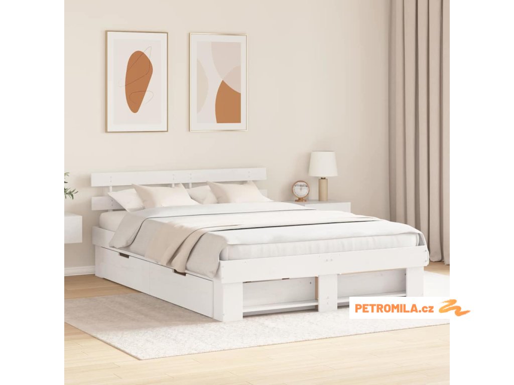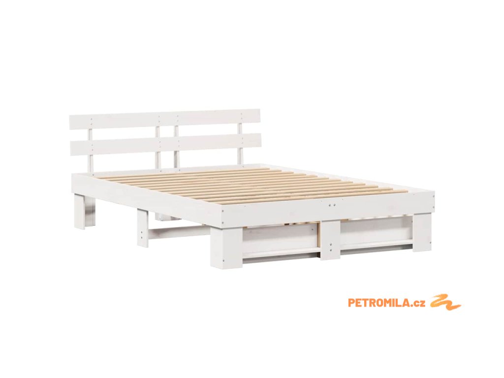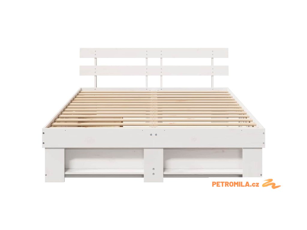 Rám postele s čelo Bílá 160 x 200 cm Masivní borové dřevo