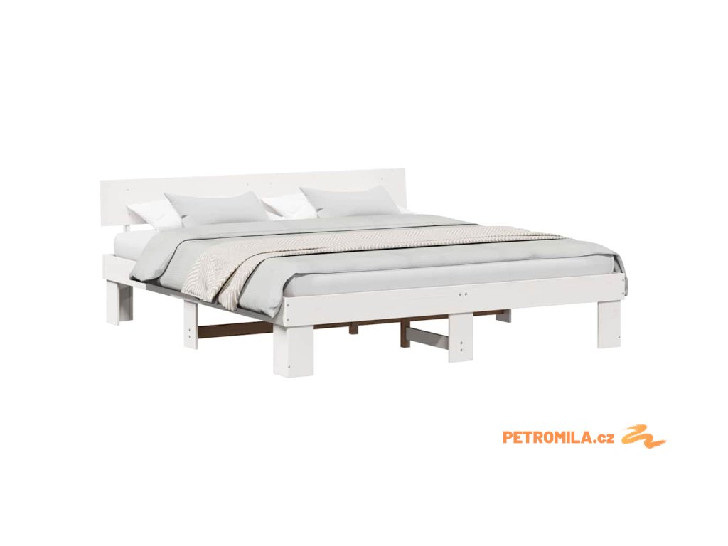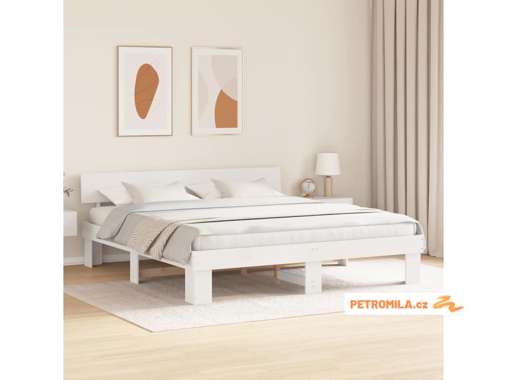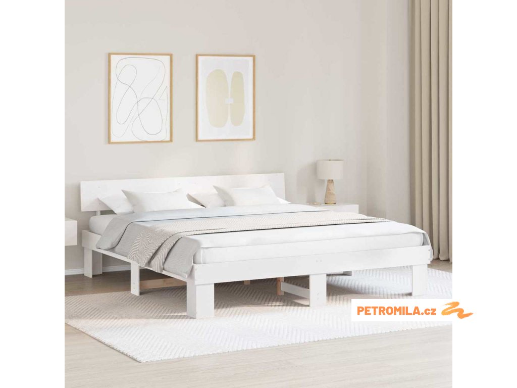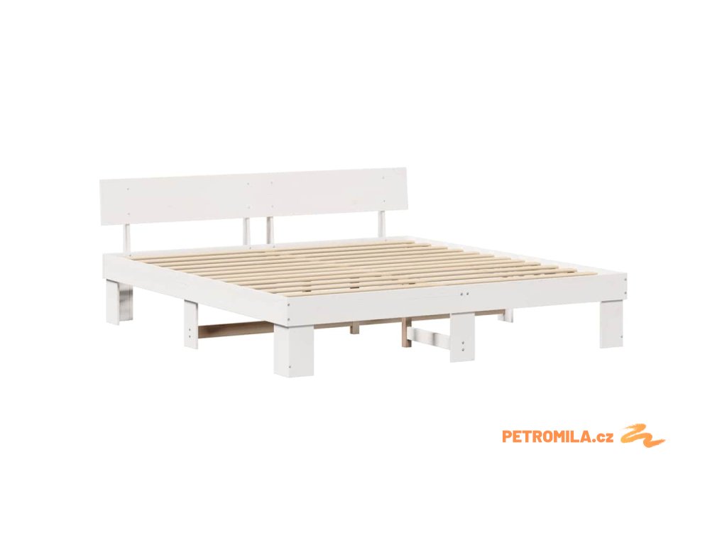 Rám postele s čelo Bílá 200 x 200 cm Masivní borové dřevo
