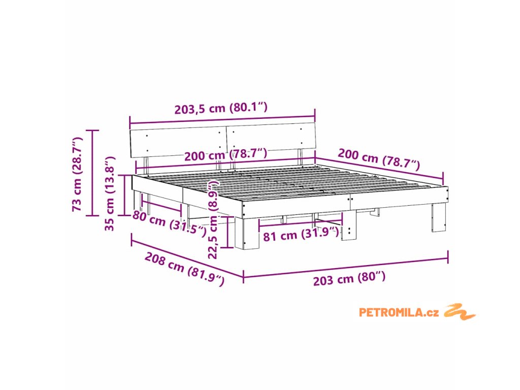 - Velikost matrace: Císařská postel (200 cm x 200 cm nebo 79" x 79")