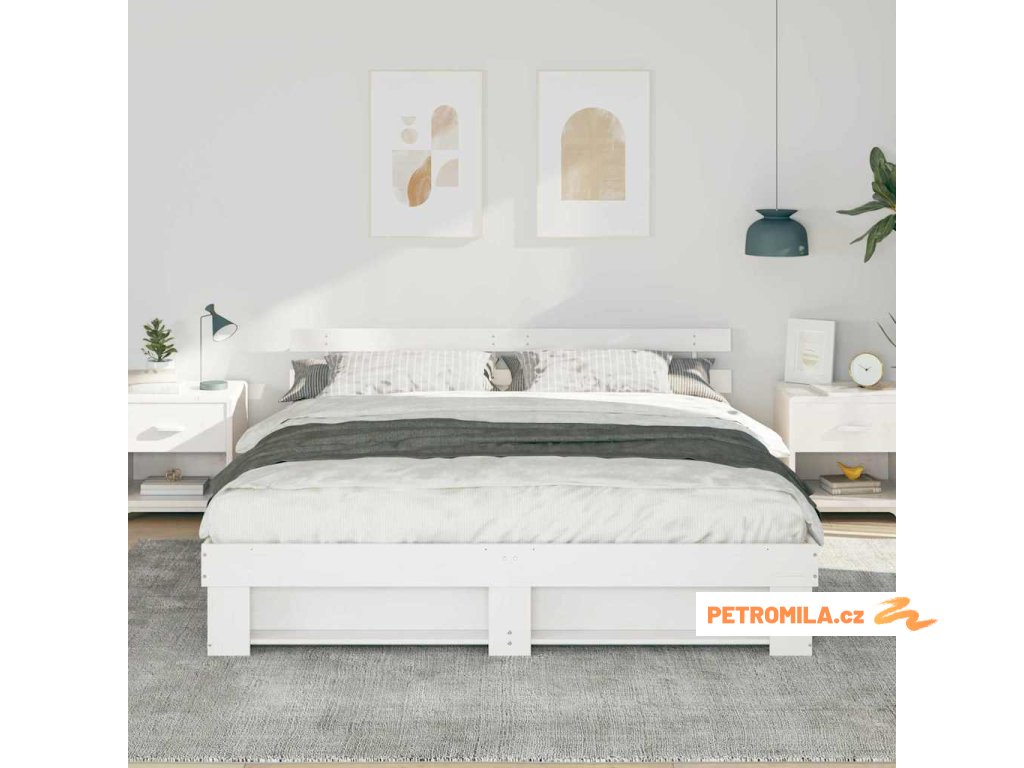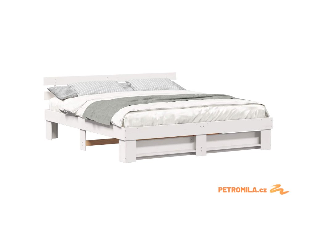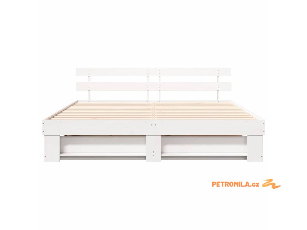 Rám postele s čelo Bílá 200 x 200 cm Masivní borové dřevo