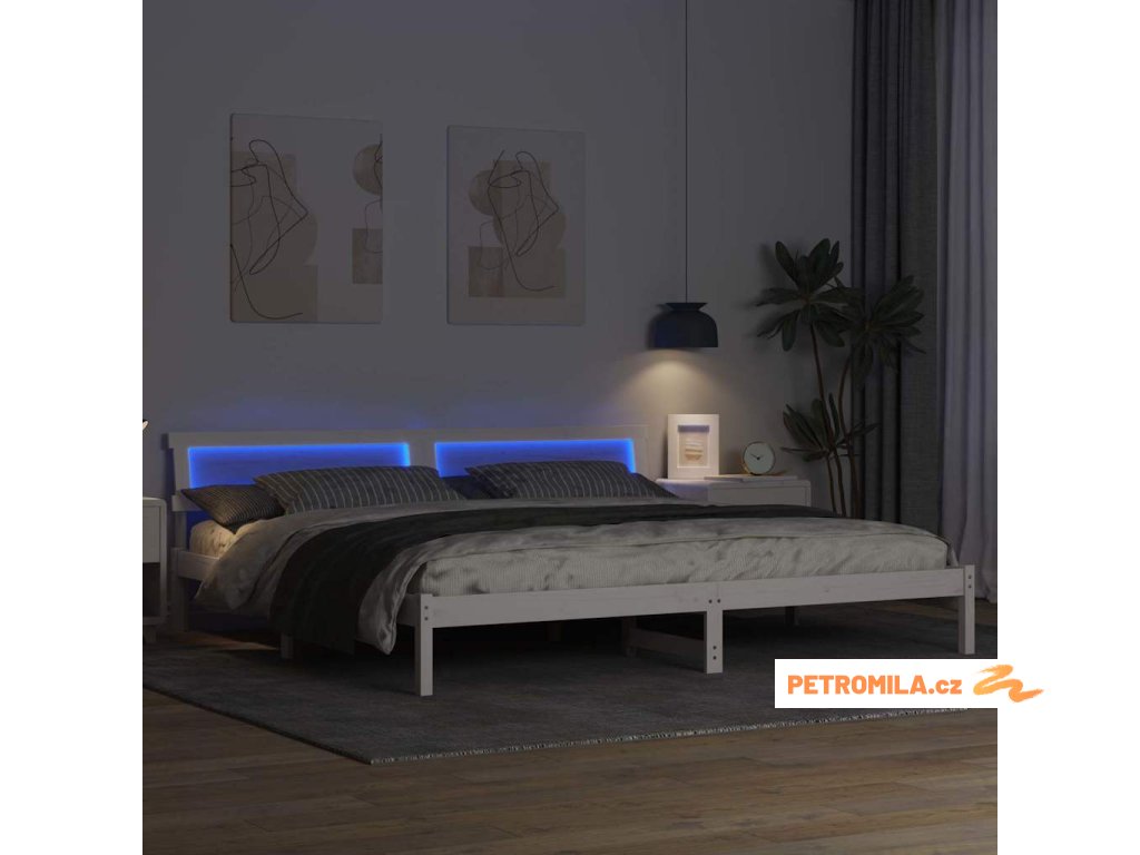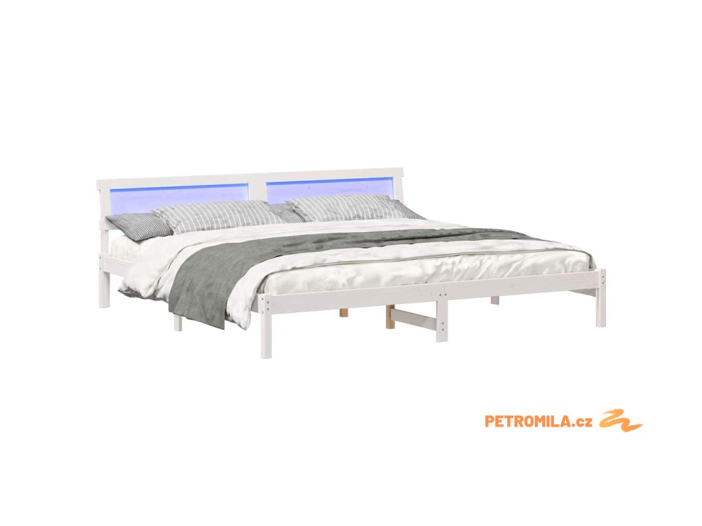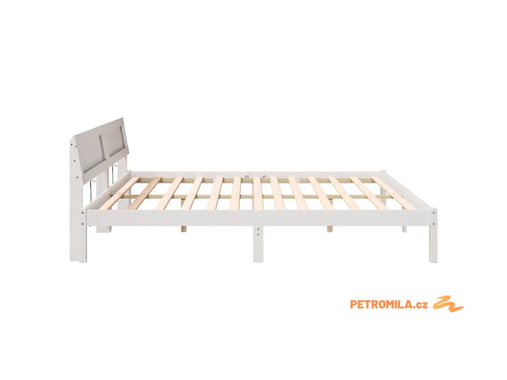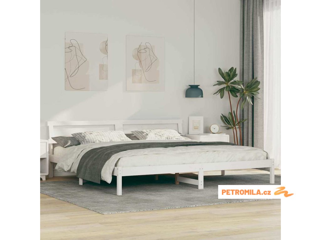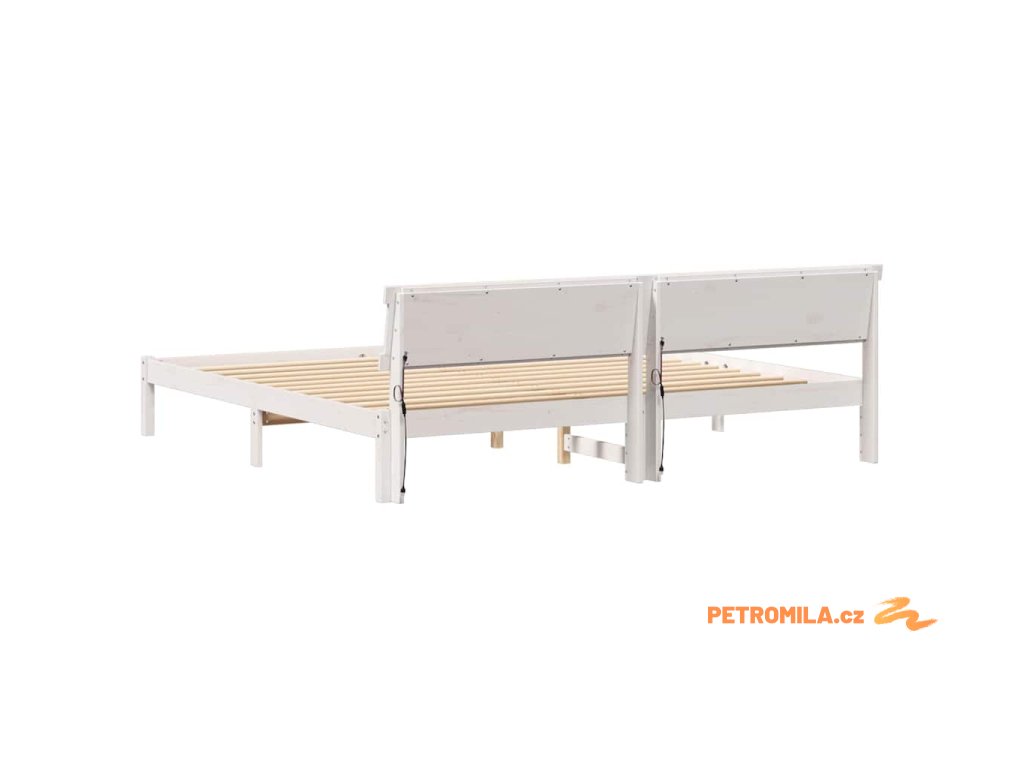 Rám postele s čelo Bílá 200 x 200 cm Masivní borové dřevo