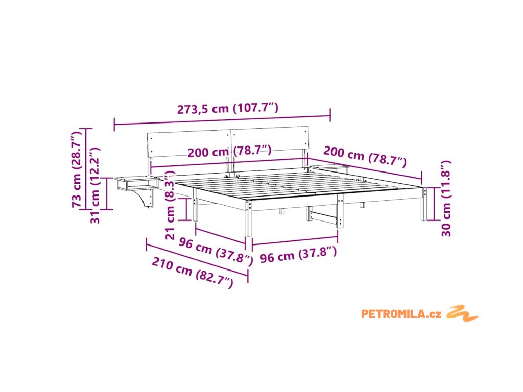 - Velikost matrace: Císařská postel (200 cm x 200 cm nebo 79" x 79")