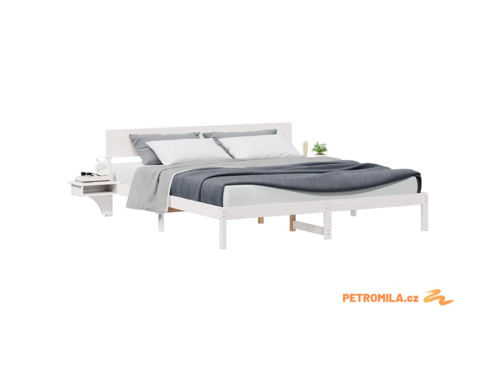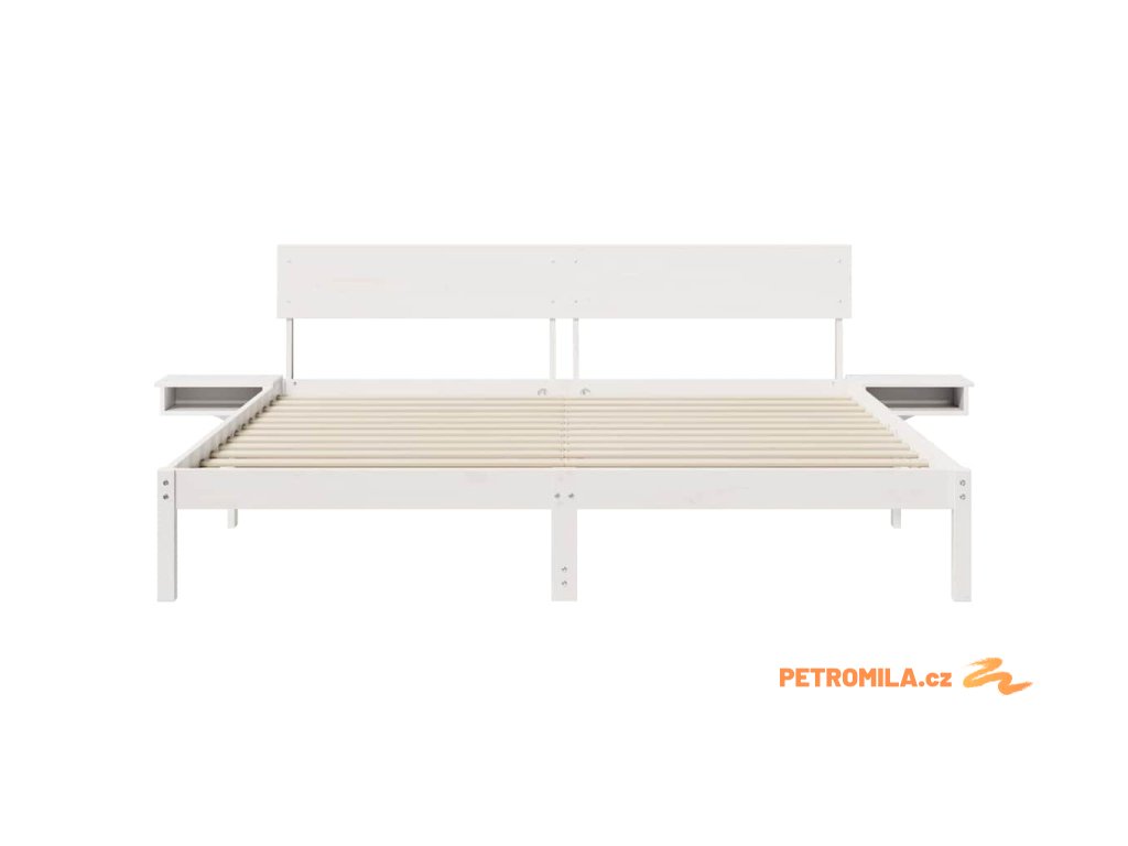 Rám postele s čelo Bílá 200 x 200 cm Masivní borové dřevo