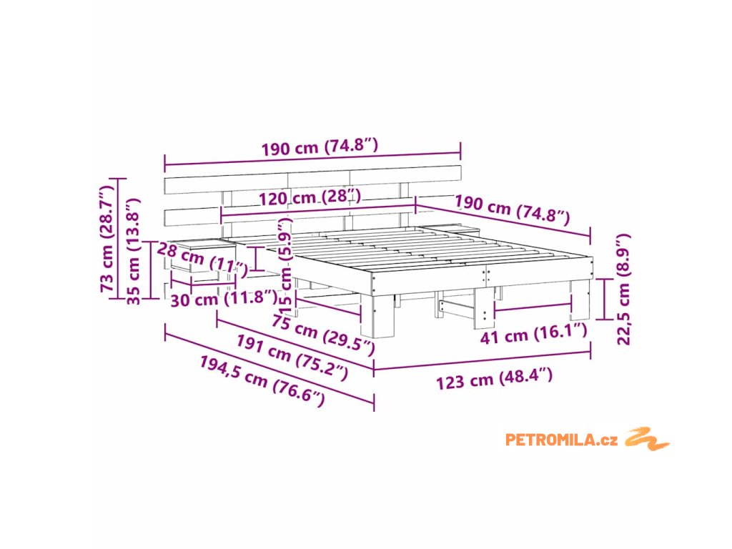 - Masivní borové dřevo: Celý rám, čelo a nohy jsou z masivního borového dřeva, což zajišťuje spolehlivou a stabilní konstrukci. Tento materiál se postará o dlouhou životnost a stabilitu, takže je to skvělá investice. Hladká textura přidává příjemný dotek.