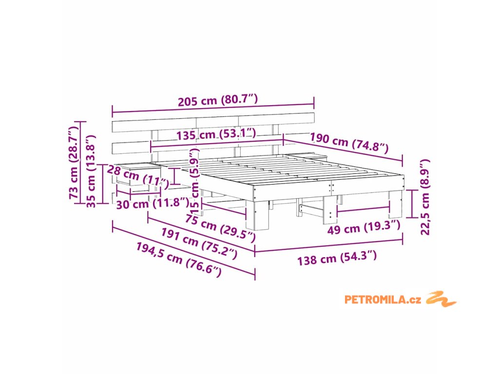 - Velikost matrace: Britská dvojitá postel (135 cm x 190 cm nebo 54" x 75")
