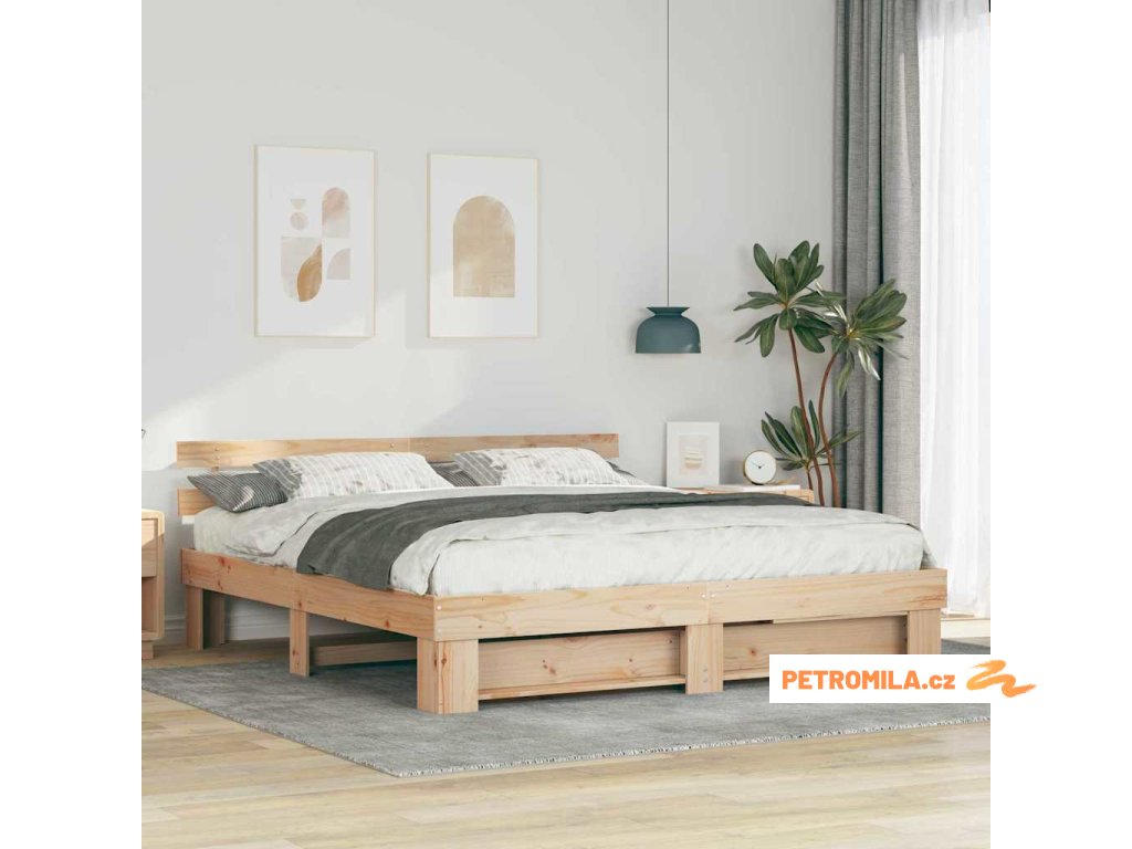 - Kvalitní materiály: Prémiové masivní borové dřevo zaručuje pevnost a nadčasovost díky krásnému přírodnímu zrnu. Tuhle pevnou konstrukci odolnou vůči sezónním změnám oceníte, protože slibuje roky bezpečného používání a zároveň dělá vaši ložnici teplejší a útulnější.