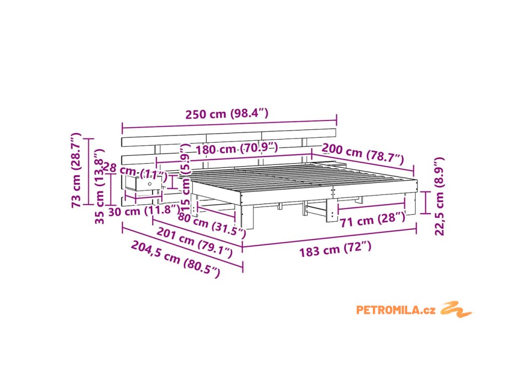 - Velikost matrace: Super king manželská postel (180 cm x 200 cm nebo 71" x 79")
