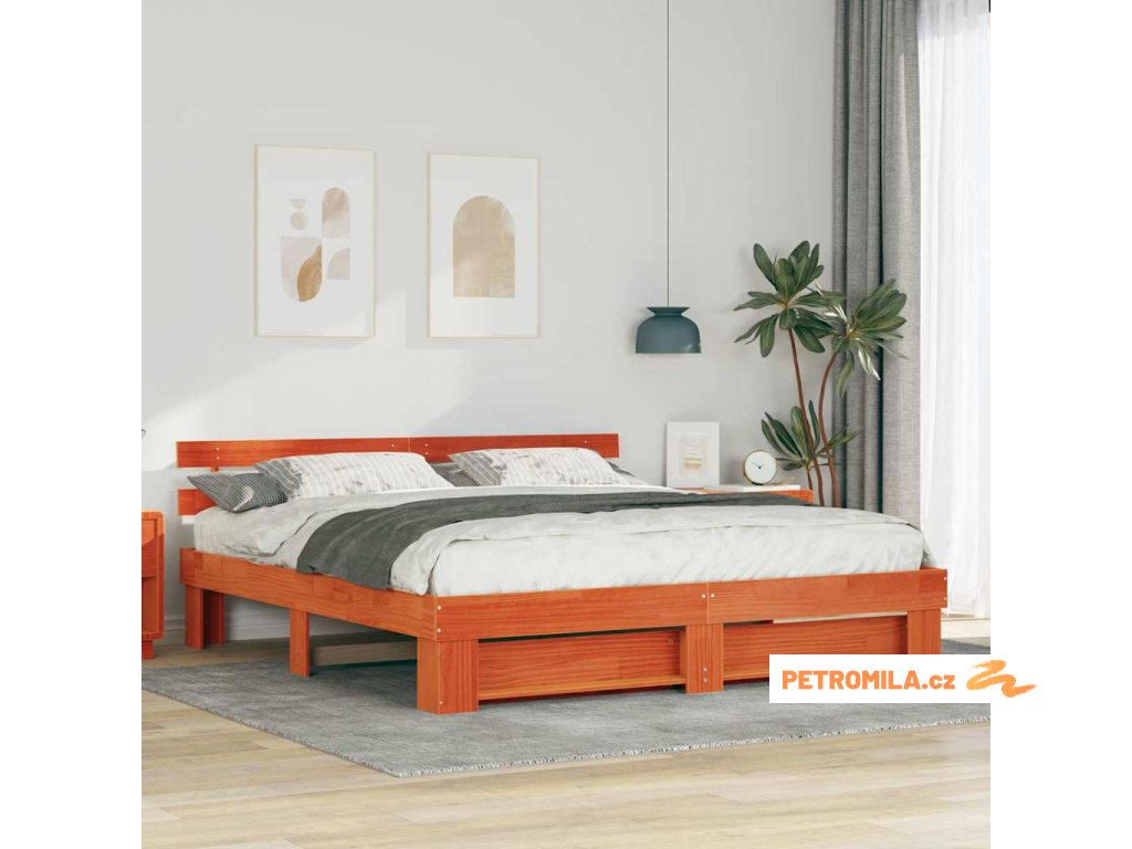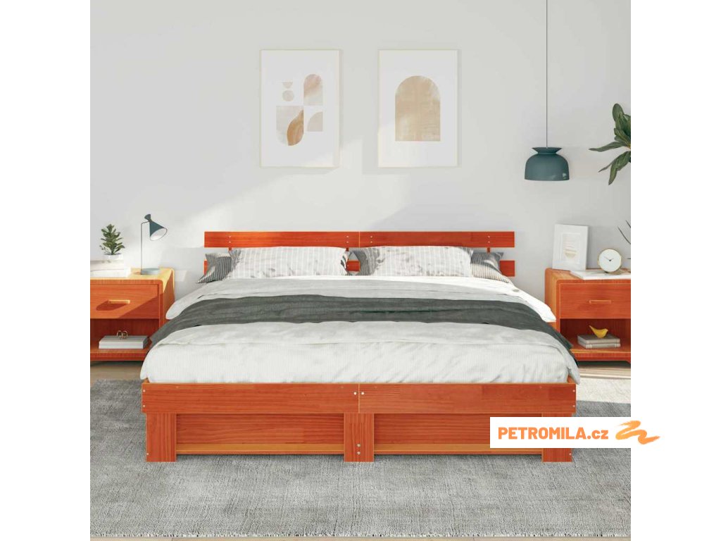 - Kvalitní materiály: Prémiové masivní borové dřevo zaručuje pevnost a nadčasovost díky krásnému přírodnímu zrnu. Tuhle pevnou konstrukci odolnou vůči sezónním změnám oceníte, protože slibuje roky bezpečného používání a zároveň dělá vaši ložnici teplejší a útulnější.