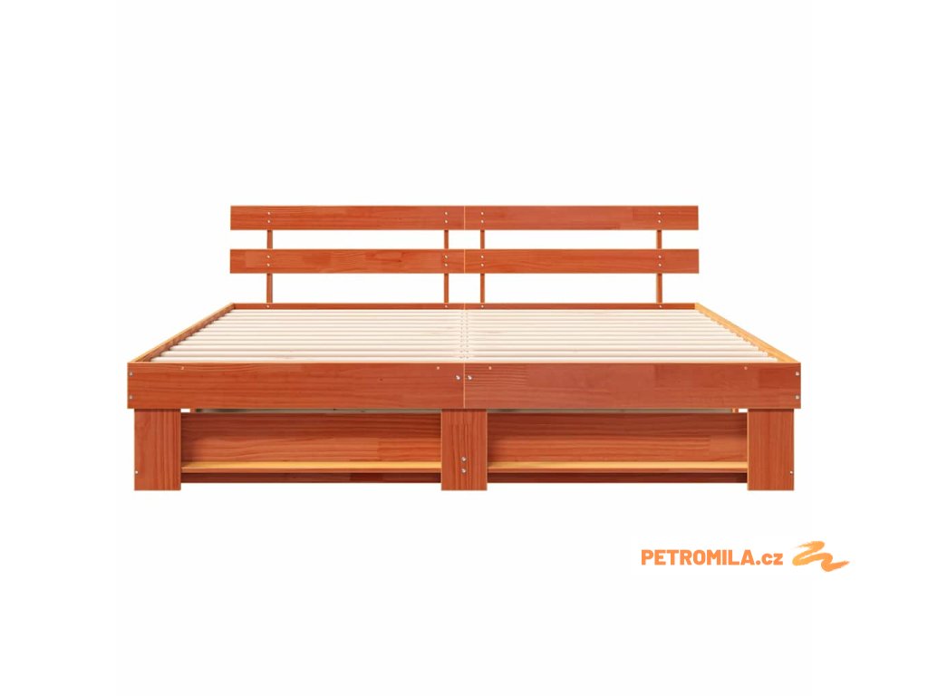 Rám postele s čelo Hnědá 200 x 200 cm Masivní borové dřevo