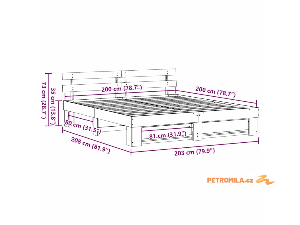 - Velikost matrace: Císařská postel (200 cm x 200 cm nebo 79" x 79")