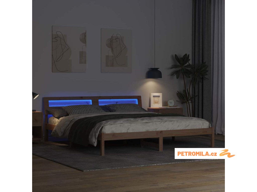 Rám postele s čelo Hnědá 200 x 200 cm Masivní borové dřevo