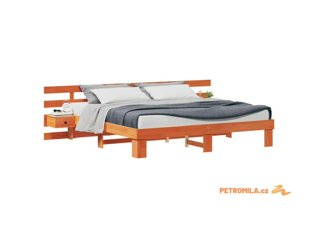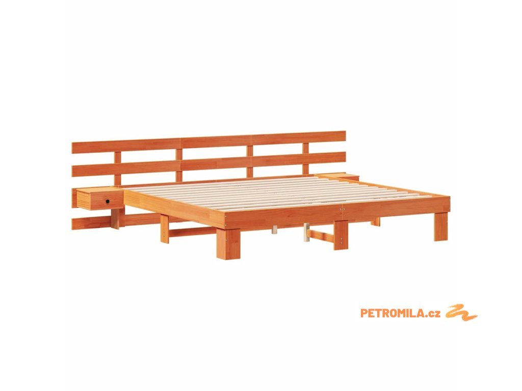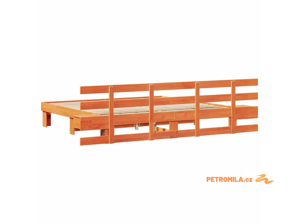 Rám postele s čelo Hnědá 200 x 200 cm Masivní borové dřevo