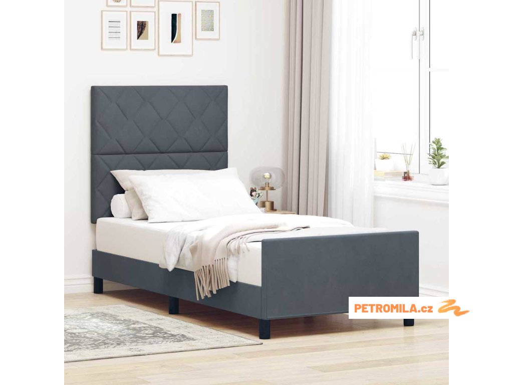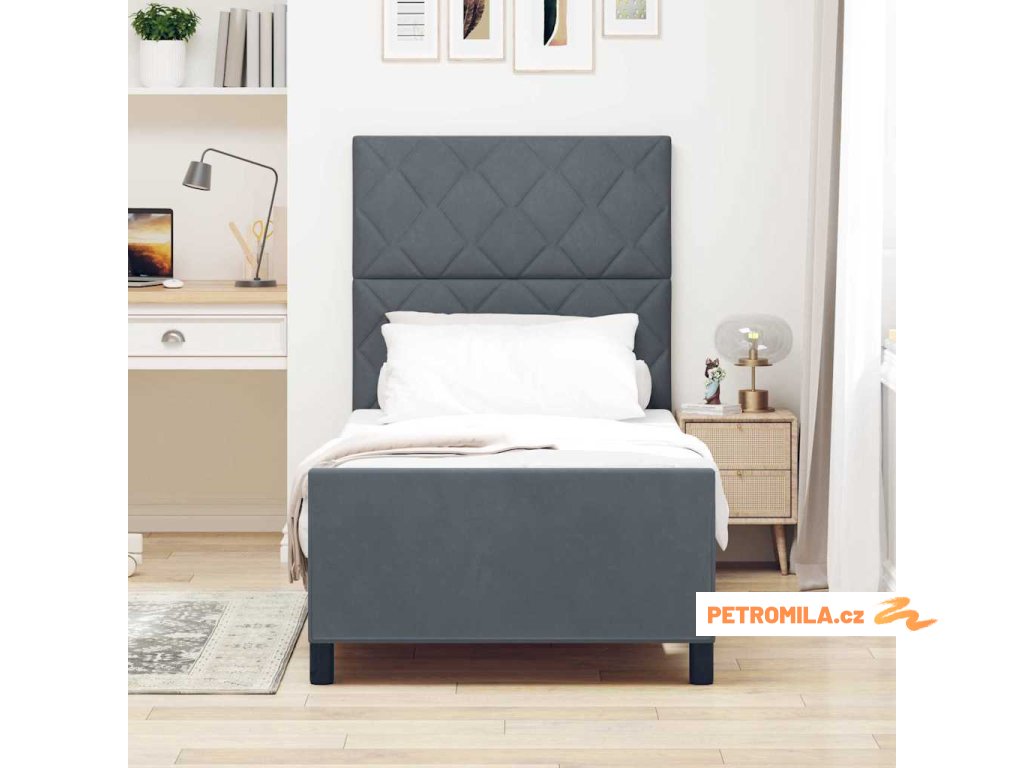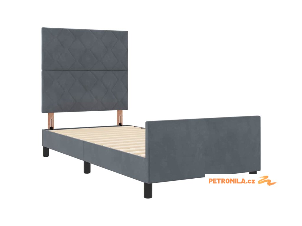 Rám postele s čelo Tmavě šedá 100 x 200 cm samet