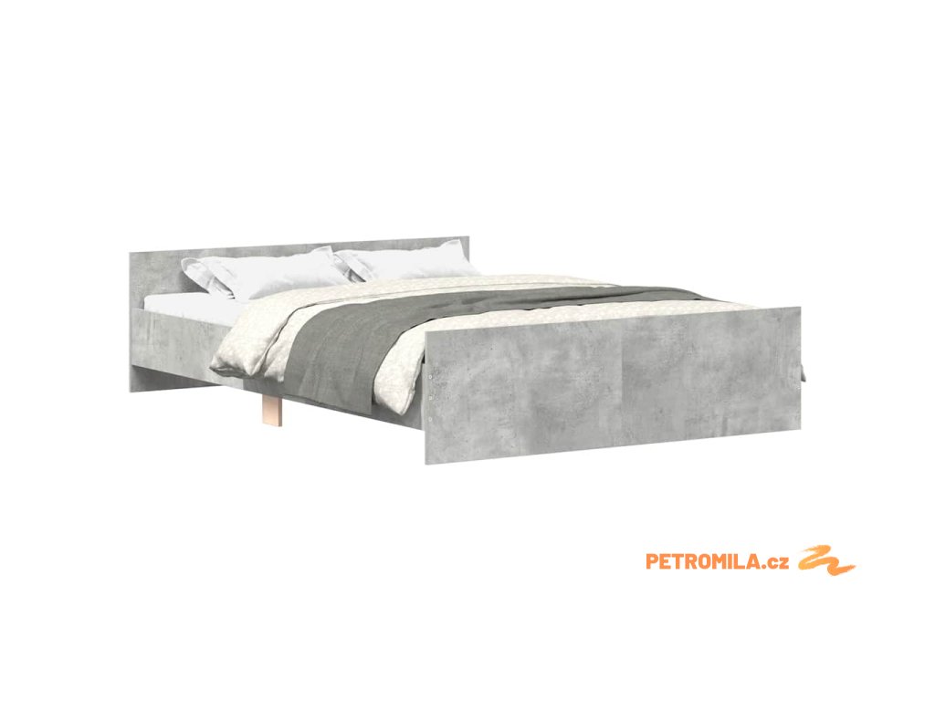 Rám postele s hlavovým a nožním čelem betonově šedý 150x200 cm