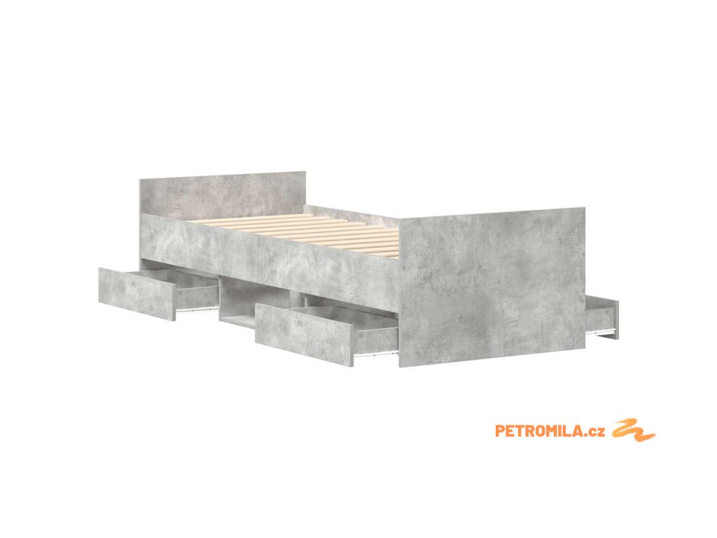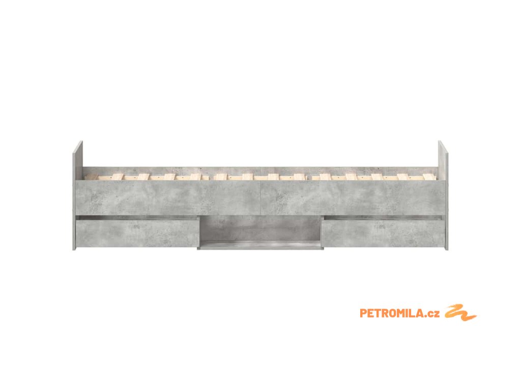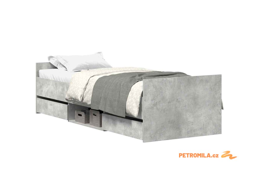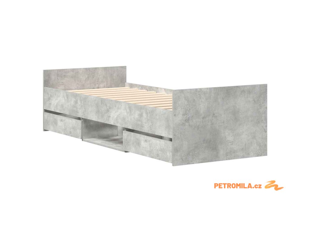 Rám postele s hlavovým a nožním čelem betonově šedý 75 x 190 cm