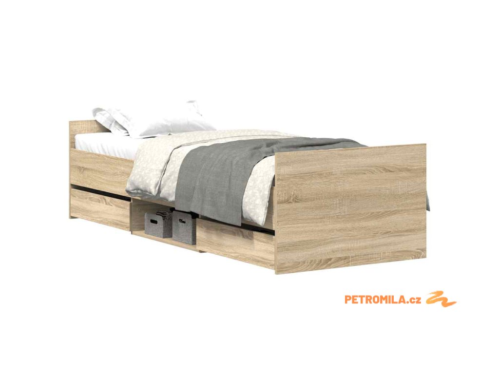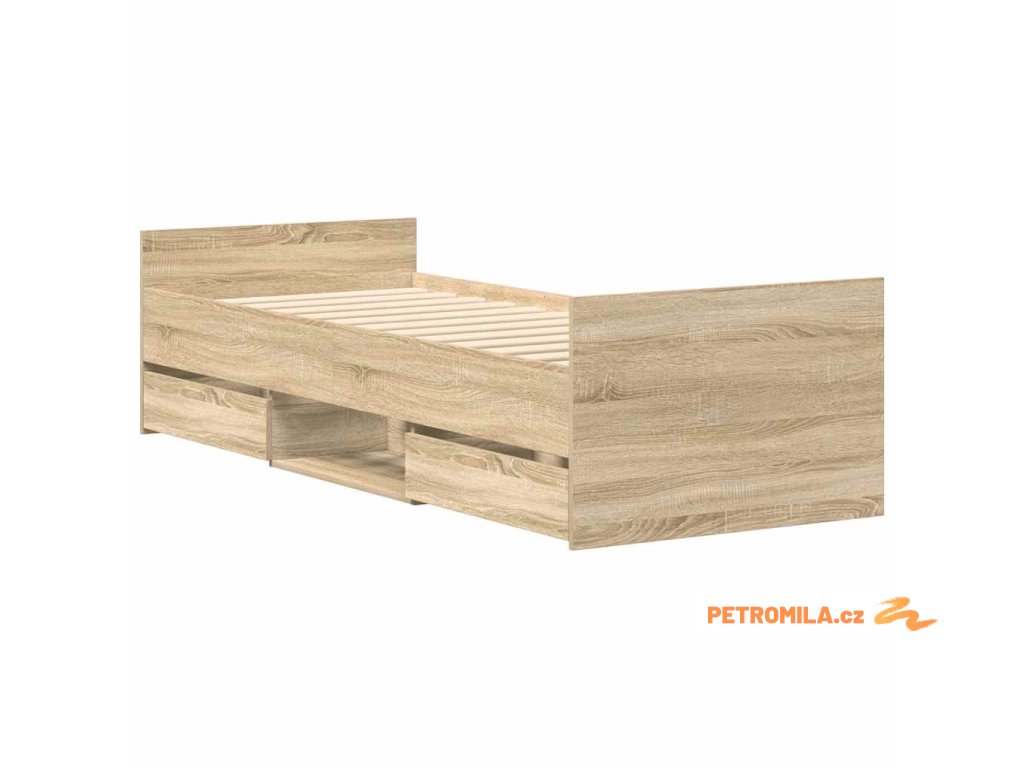 Rám postele s hlavovým a nožním čelem dub sonoma 90 x 190 cm