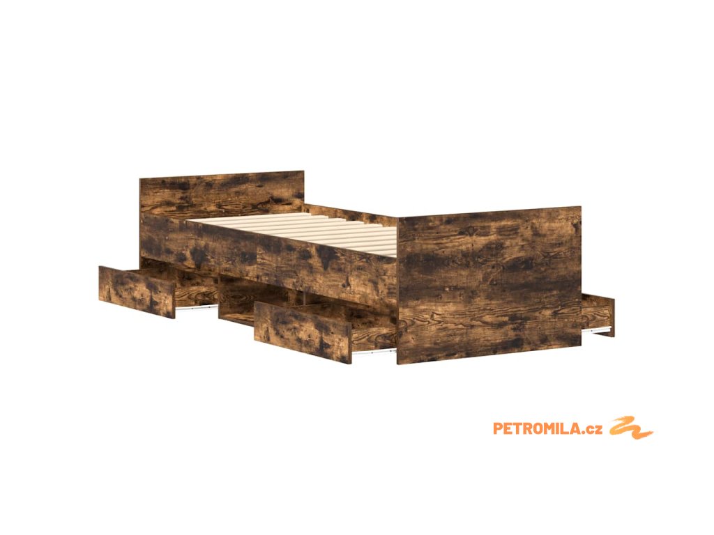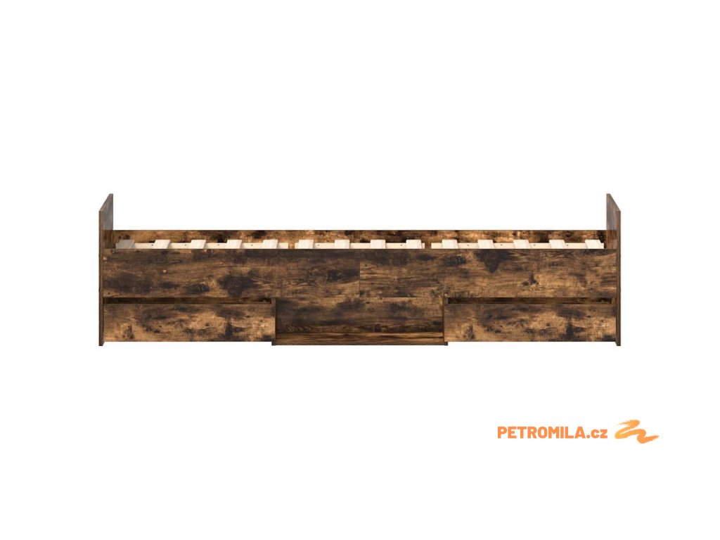 Rám postele s hlavovým a nožním čelem kouřový dub 100 x 200 cm