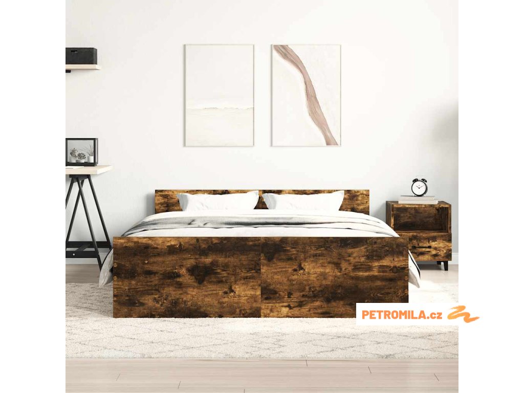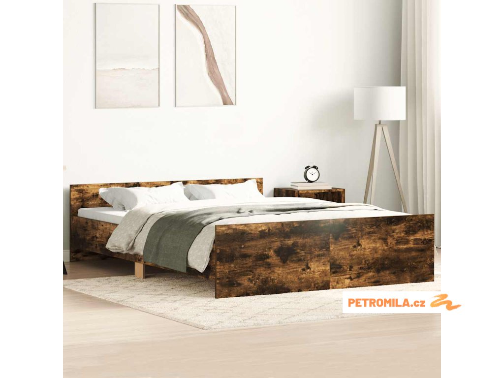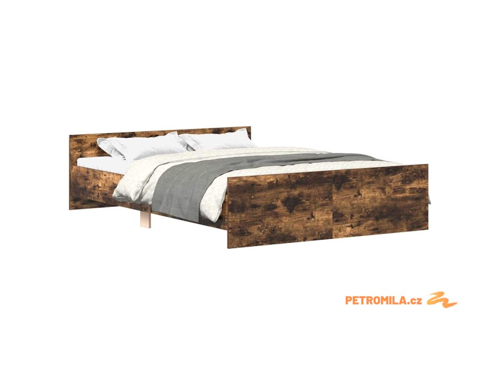 Rám postele s hlavovým a nožním čelem kouřový dub 120 x 200 cm