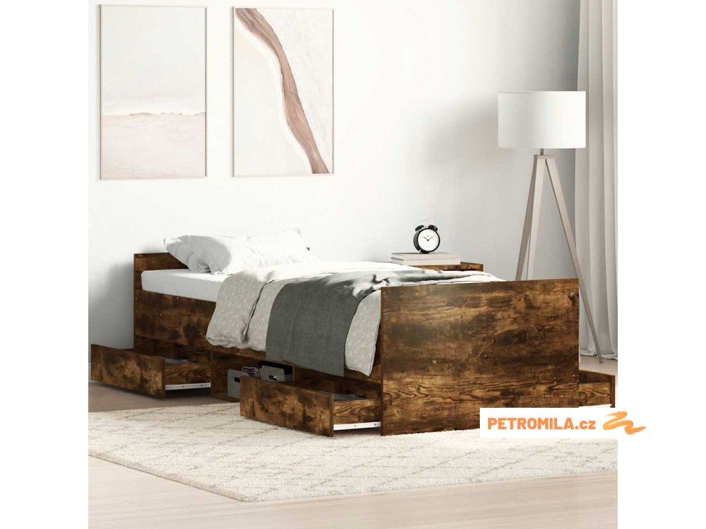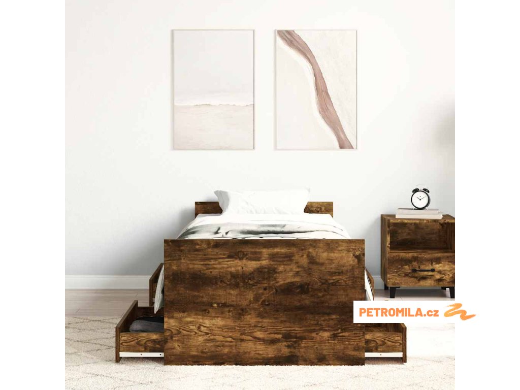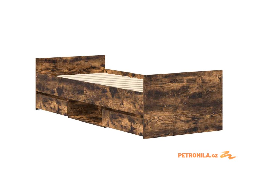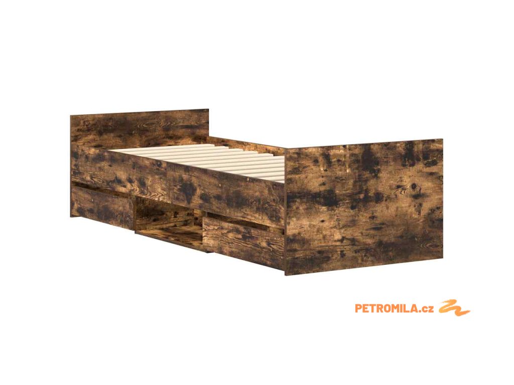 Rám postele s hlavovým a nožním čelem kouřový dub 90 x 200 cm
