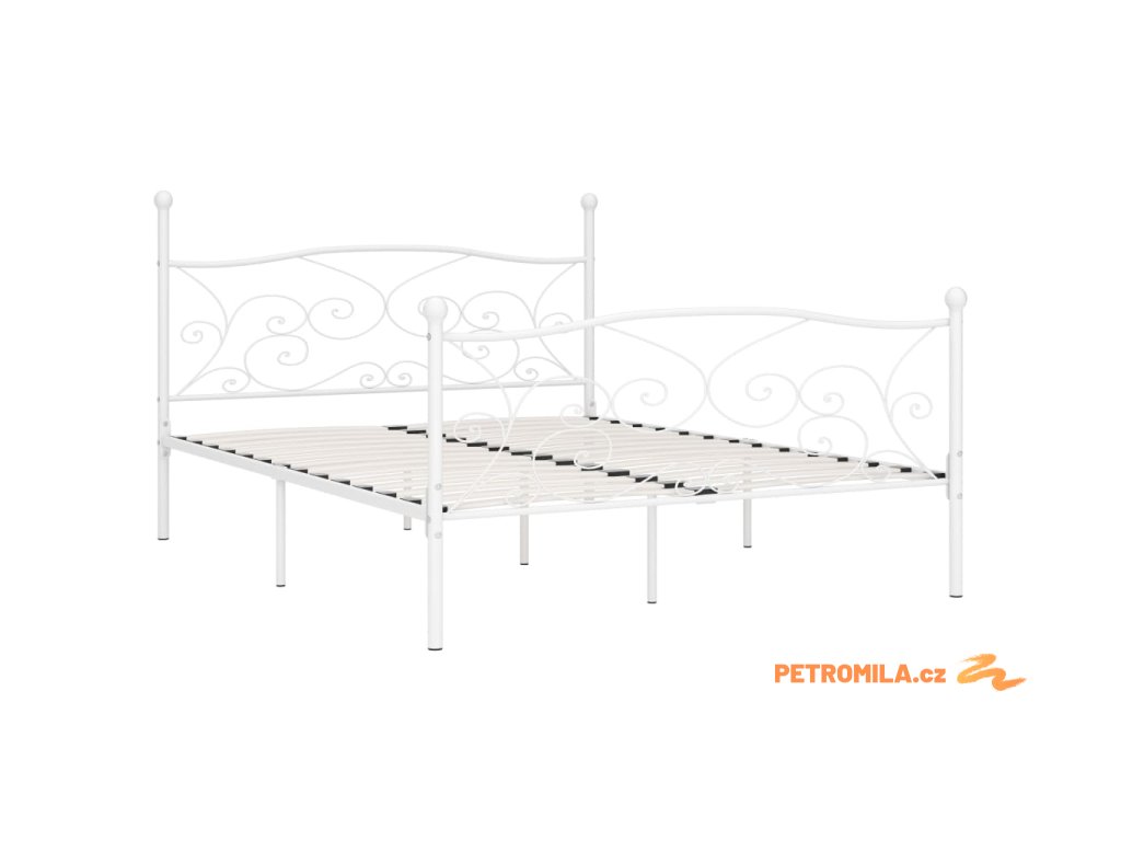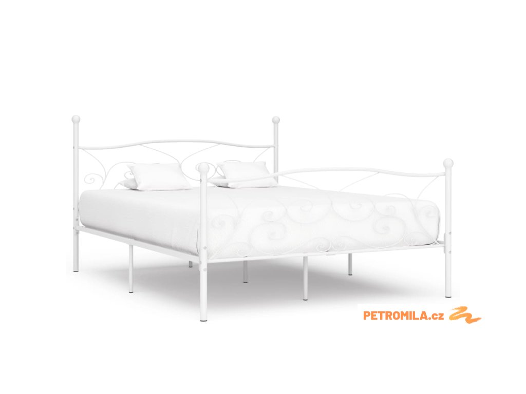 Rám postele s laťkovým roštem bílý kov 180 x 200 cm