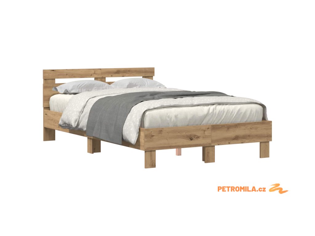Rám postele s LED Artisanový dub 135 x 190 cm kompozitní dřevo