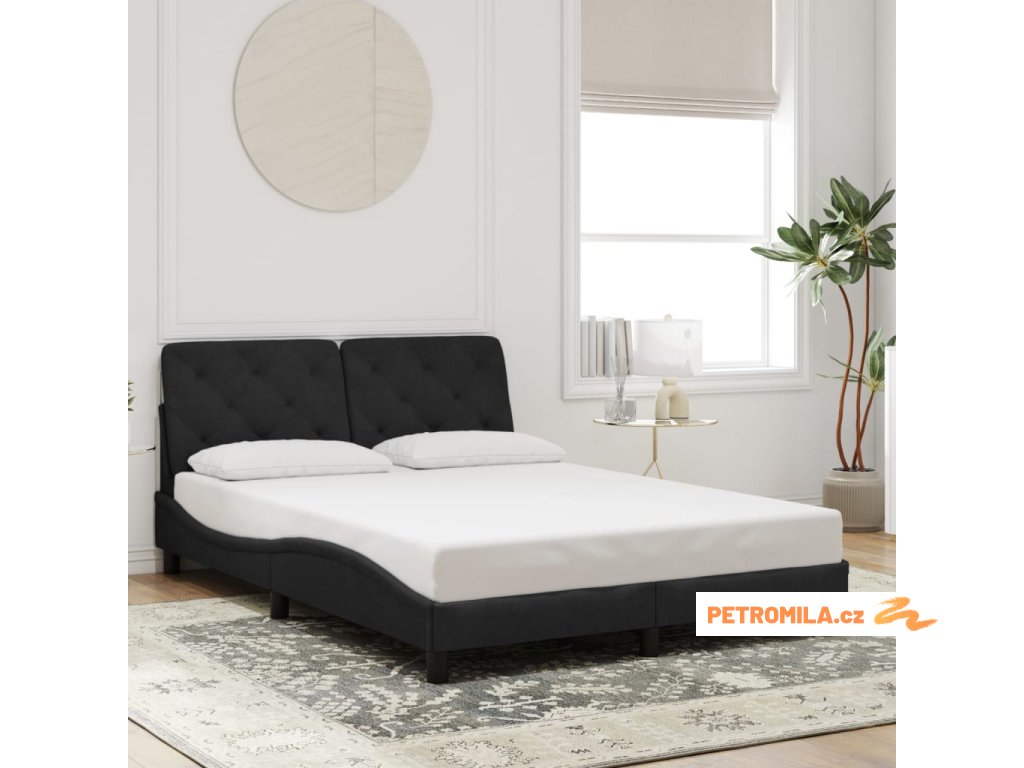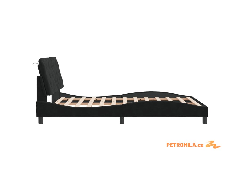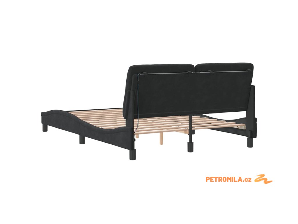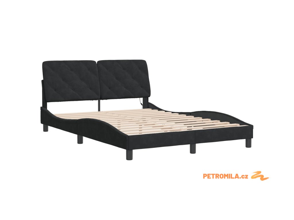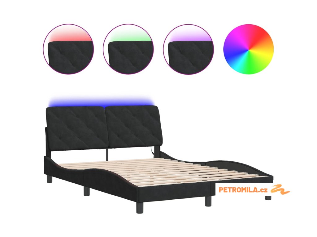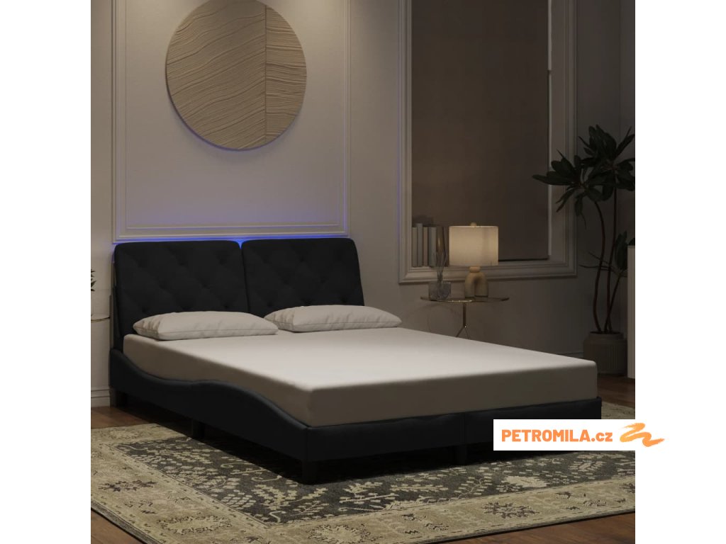 Rám postele s LED bez matrace černý 140 x 200 cm samet