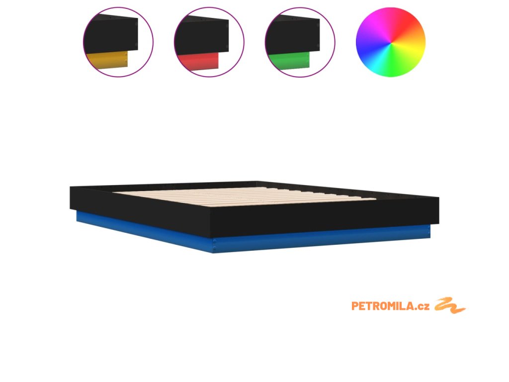 Rám postele s LED bez matrace černý 150x200 cm