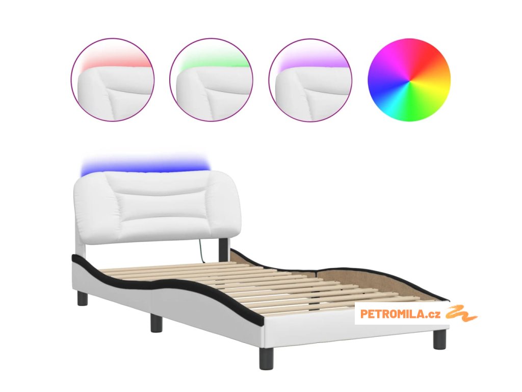 Rám postele s LED bez matrace Hvar bílý a černý 100x200 cm