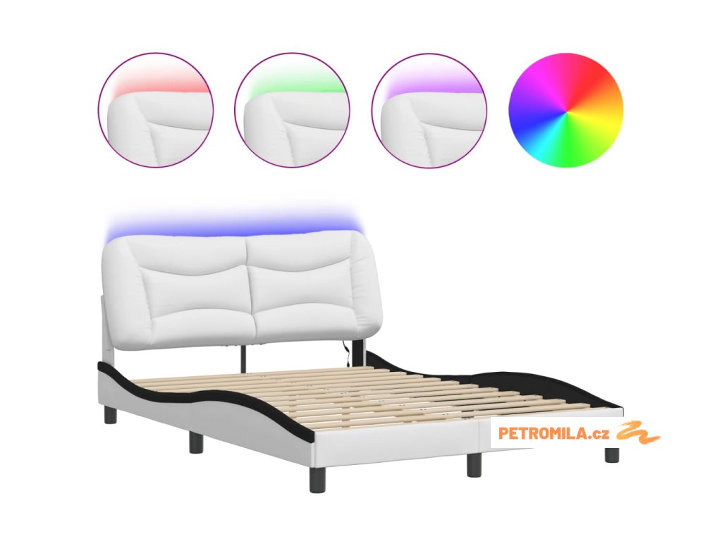 Rám postele s LED bez matrace Hvar bílý a černý 140x190 cm