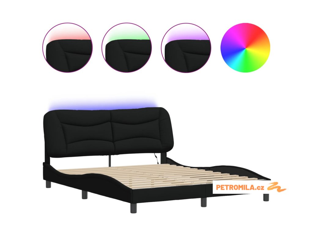 Rám postele s LED bez matrace Hvar černý 160x200 cm Látka