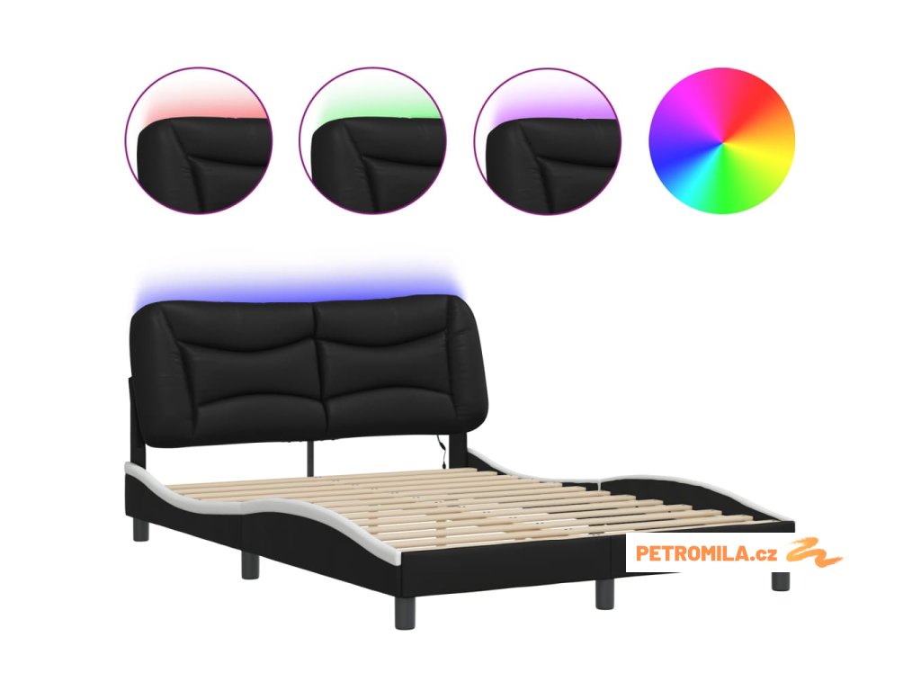 Rám postele s LED bez matrace Hvar černý a bílý 140x200 cm