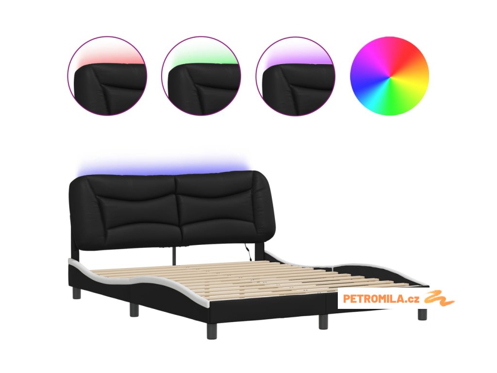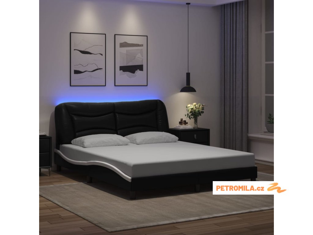 Rám postele s LED bez matrace Hvar černý a bílý 160x200 cm