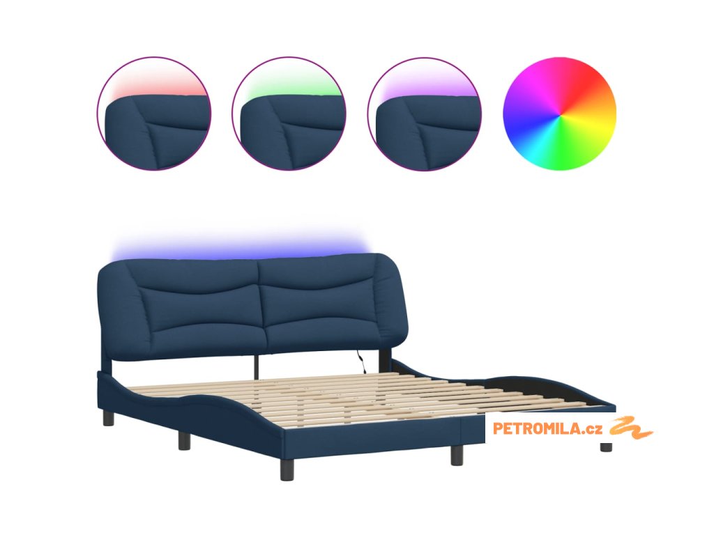 Rám postele s LED bez matrace Hvar Modrá 180x200 cm Látka