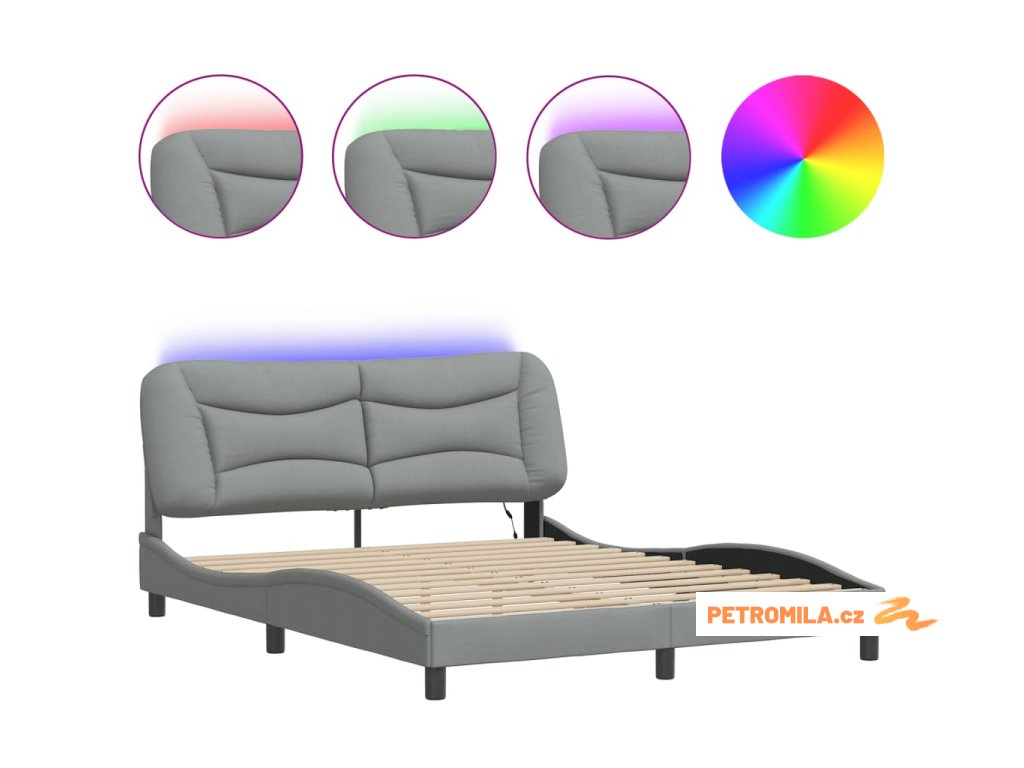 Rám postele s LED bez matrace Hvar Světle šedá 160x200 cm Látka