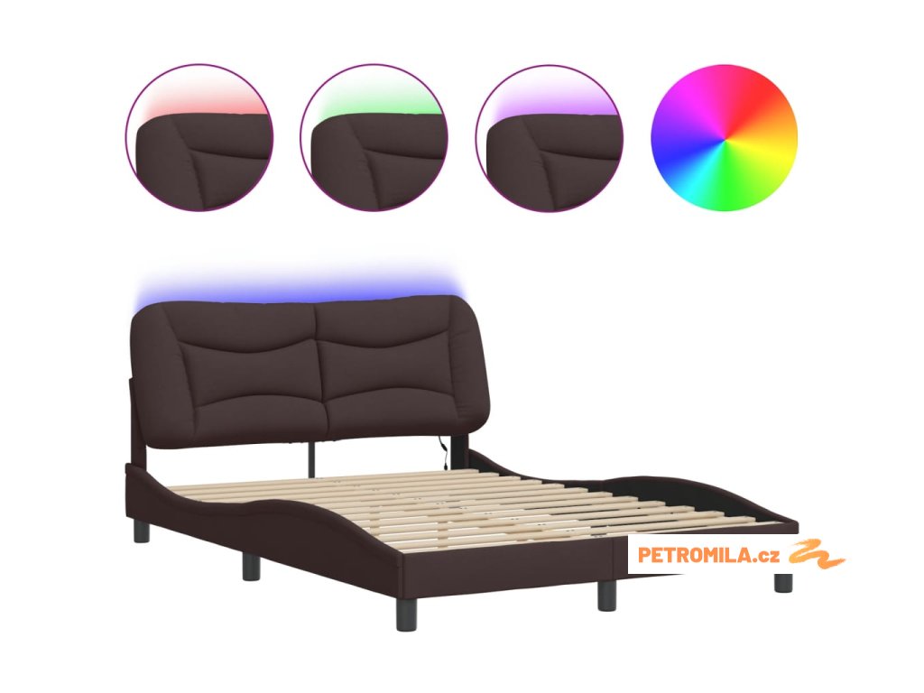 Rám postele s LED bez matrace Hvar Tmavě hnědá 140x200 cm Látka