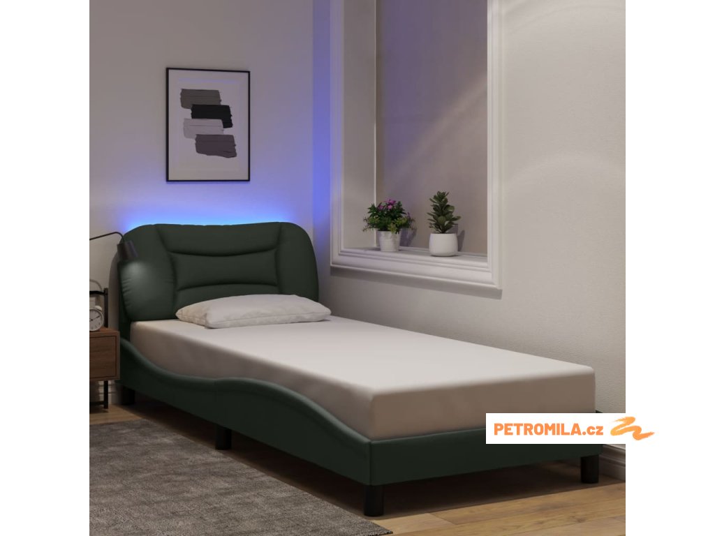 Rám postele s LED bez matrace Hvar Tmavě šedá 90x200 cm Látka