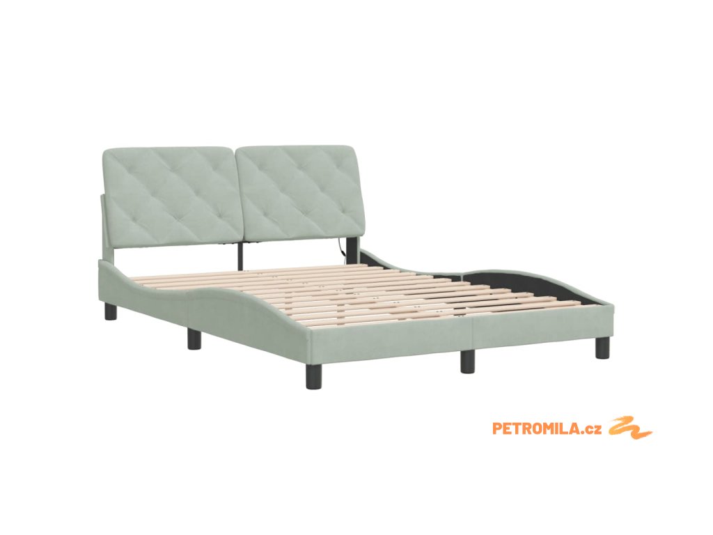 Rám postele s LED bez matrace světle šedý 120 x 200 cm samet