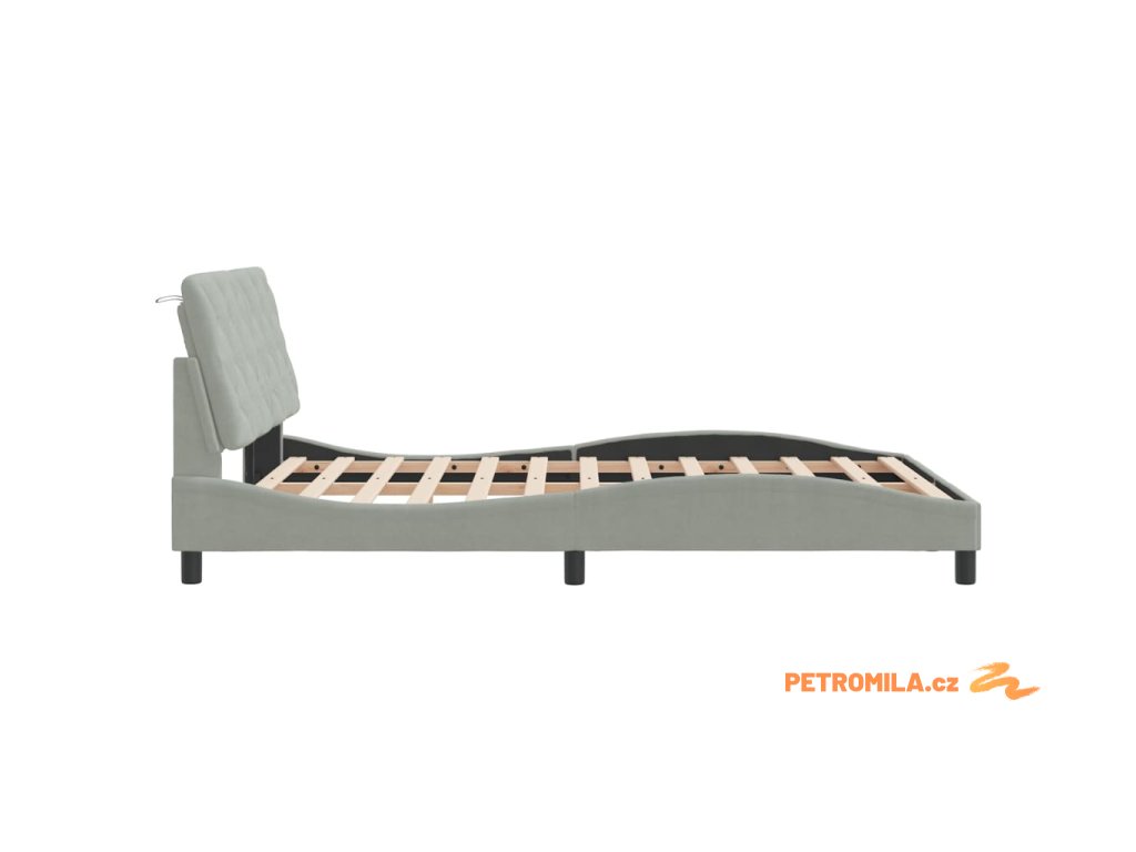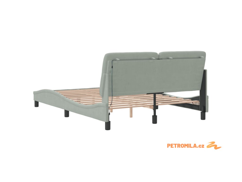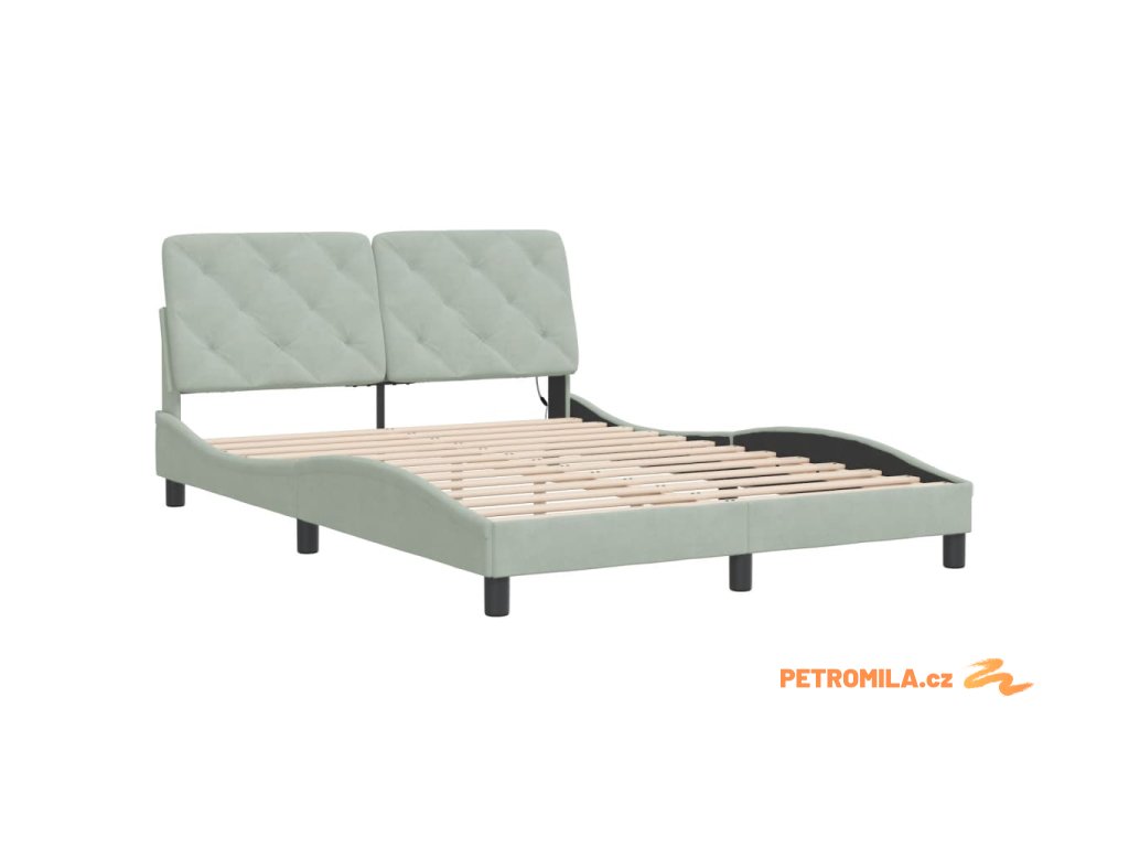 Rám postele s LED bez matrace světle šedý 140 x 200 cm samet