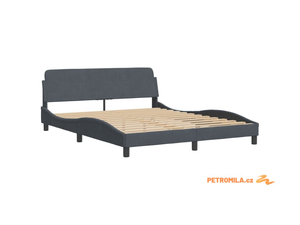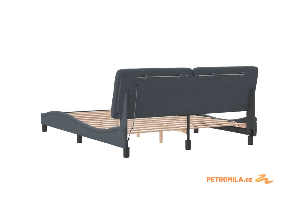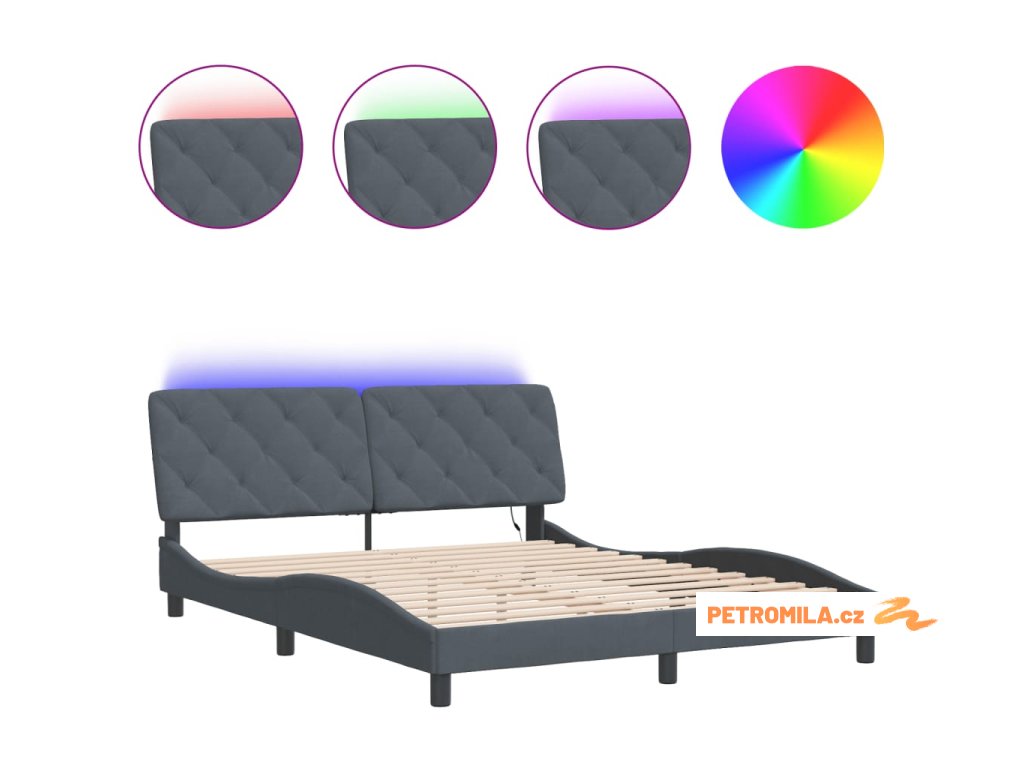 Rám postele s LED bez matrace tmavě šedý 160 x 200 cm samet