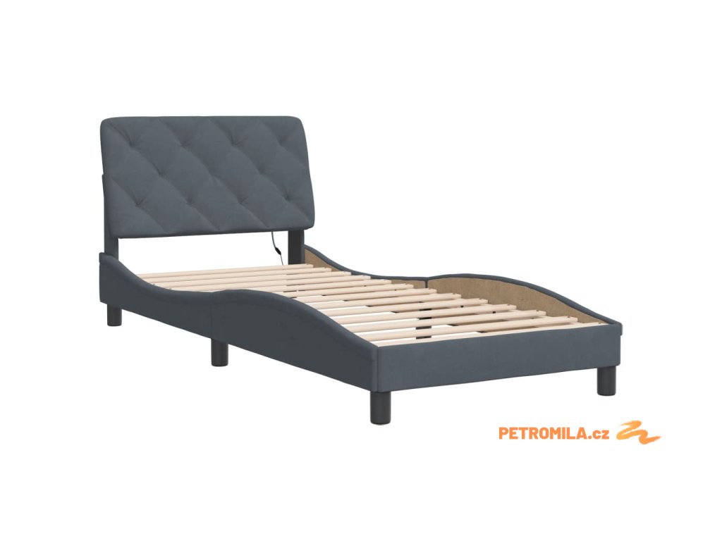 Rám postele s LED bez matrace tmavě šedý 80 x 200 cm samet
