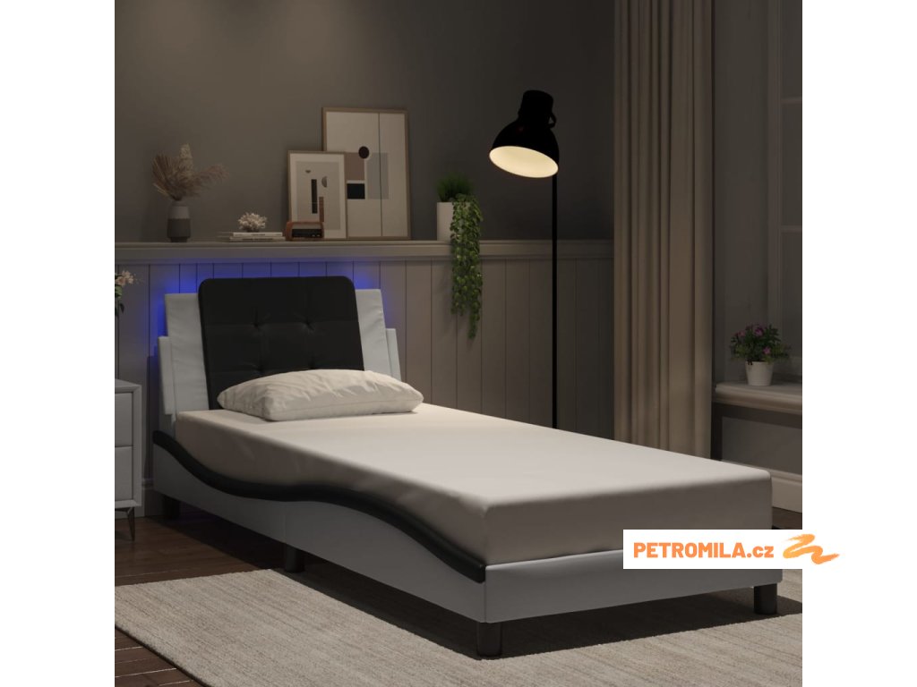 Rám postele s LED bez matrace Zadar bílý a černý 90x190 cm
