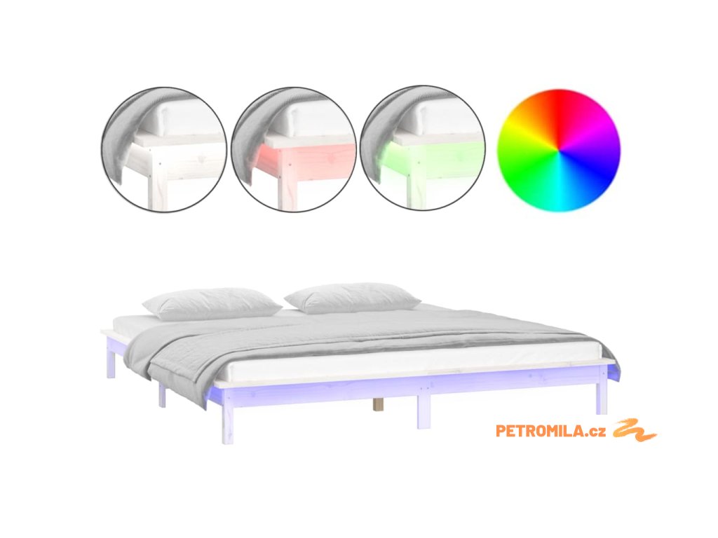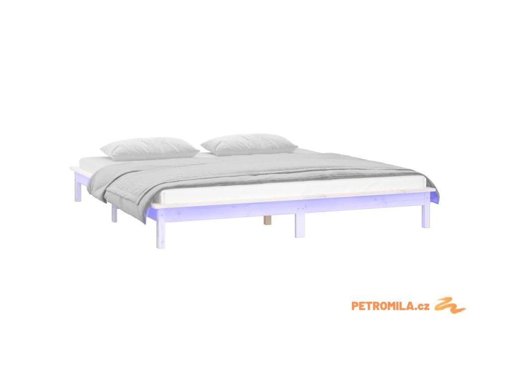 Rám postele s LED bílý 180 x 200 cm Super King masivní dřevo